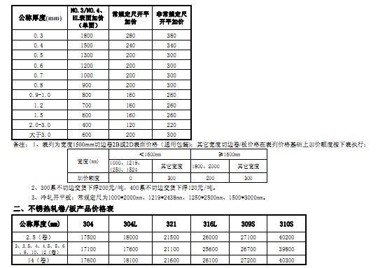 2、交货期为5月份的不锈钢板材合同执行本价格。其它未尽事宜仍按现行规定执行。