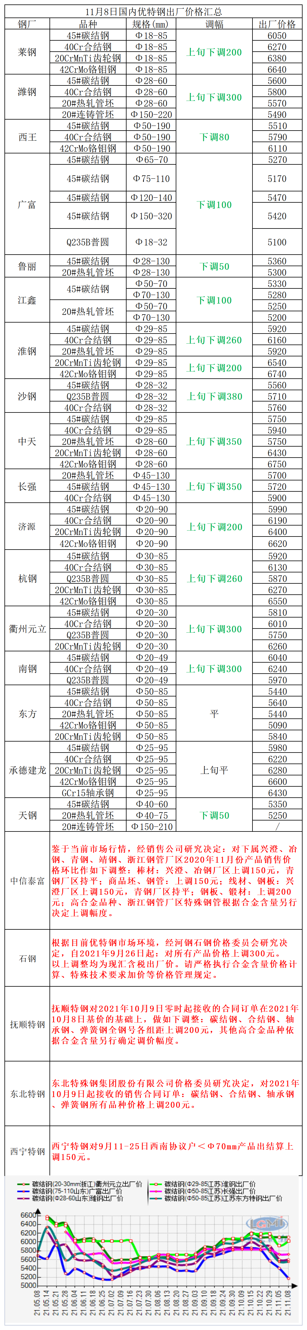 11月4日常州东方特钢优特钢出厂价格下调50元