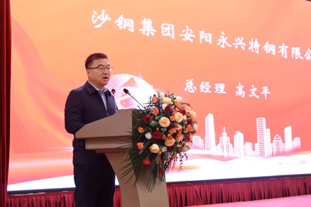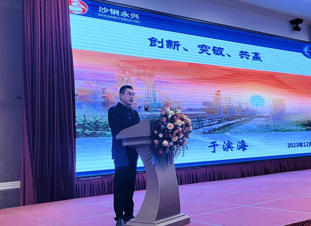 “我们将以市场为导向,以提升服务为核心,尽最大努力满足广大客户的产品和服务需求,让广大客户得到实实在在的效益。”会上,总经理高文平以《把握机遇,携手并进,共同绘就新的蓝图》为题发表了热情洋溢的的讲话。 高文平指出,2023年,沙钢永兴公司按照集团发展壮大特钢板块的规划要求,坚持“创新驱动、品质领先、提质增效、转型发展”理念,加快推进工艺创新、技术进步、结构调整、服务优化,在运营质量、企业竞争力、市场竞争力、用户满意度等方面得到稳步提升。 高文平表示,2024年,在市场竞争日益激烈的新形势下,上下游用户间建立更为稳固、更为紧密的伙伴关系,是应对挑战、抢抓机遇、加快发展的重要举措。沙钢永兴将坚持“一切围绕市场、一切服务用户”的理念,把客户当做企业的第一资源和核心资产来经营,以优质产品和周到服务,不断为广大用户创造价值、创造财富,实现互信双赢,共同跑赢大盘,携手应对钢铁“寒冬”。一是坚持低成本生产,高效发挥产线能力,为广大用户提供优质低价产品;二是围绕用户需求,狠抓品种优化、品质提升、品牌建设的“三品提升”,提升市场品牌影响力;三是强化市场研判,加强信息交流,提升市场应变能力,更好地服务广大用户;四是加快项目建设,全力推动转型升级高质量发展,与广大客户建立加强协同,共同推进新产品研发,满足广大客户需求。相信只要厂商之间秉承携手并进、合作共赢的理念,一定能把握机遇、共克时艰,共同应对钢铁寒冬,一起创造更加美好的明天!